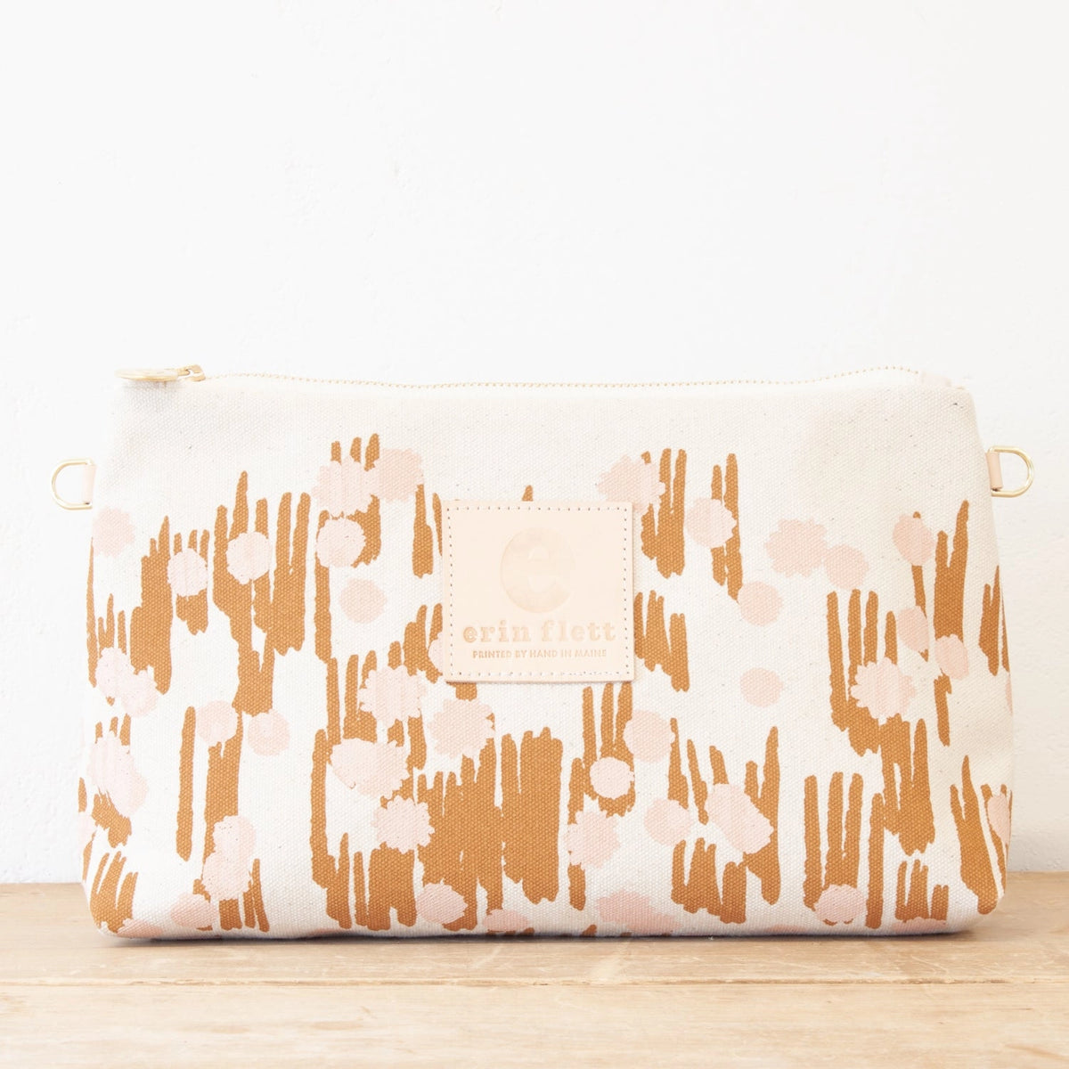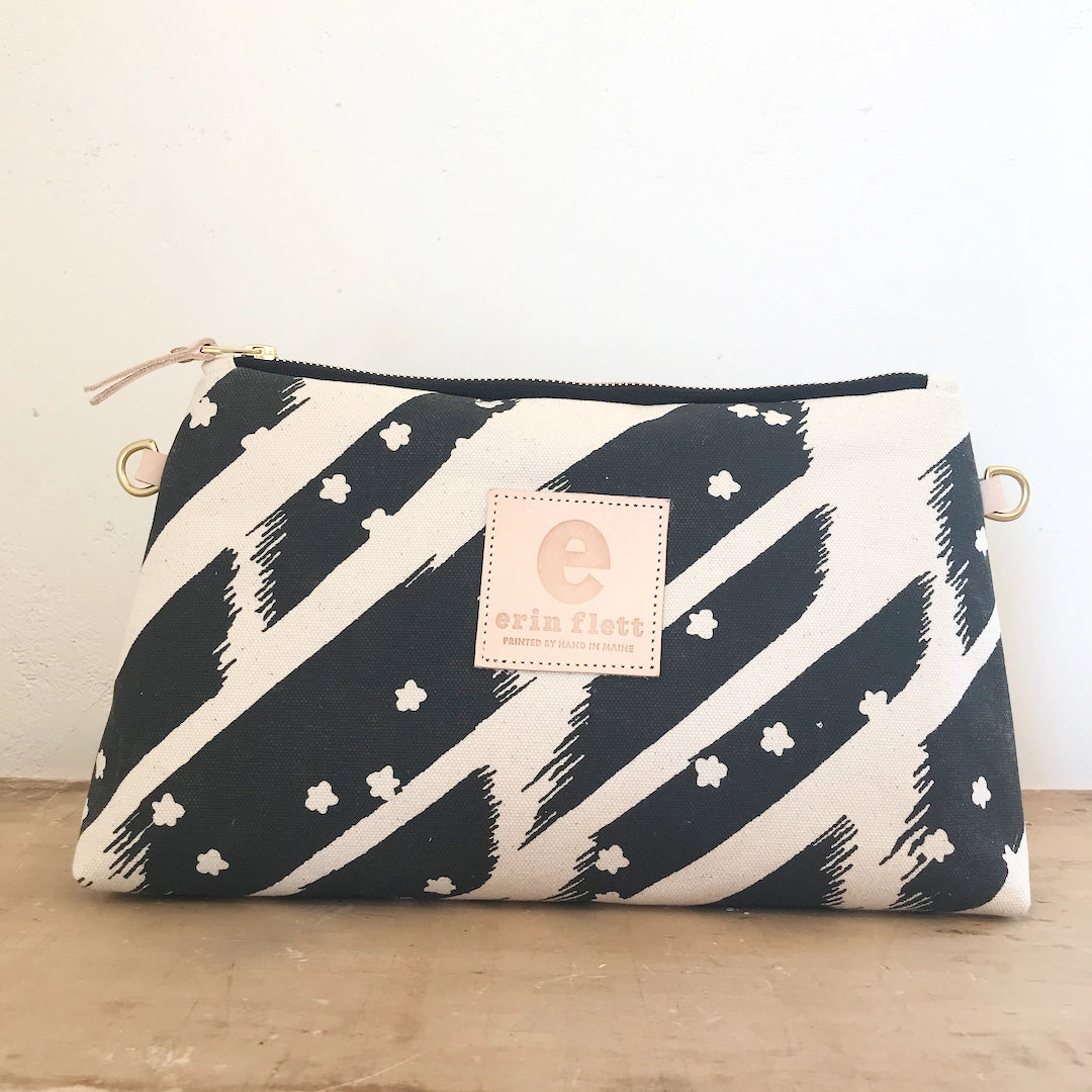 These little gems are hand printed and sewn in Maine. The quality in the details is something you will see and feel. The maker looks at every opportunity to make these beautiful and practical. The inside of these spacious bags are printed with a fun contrasting polka dot pattern.