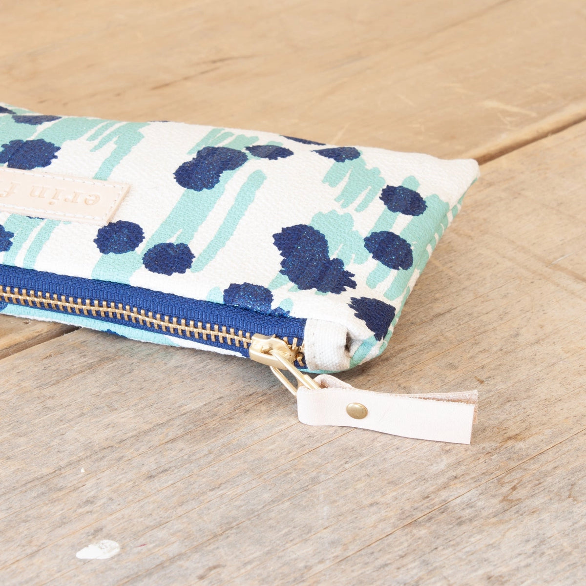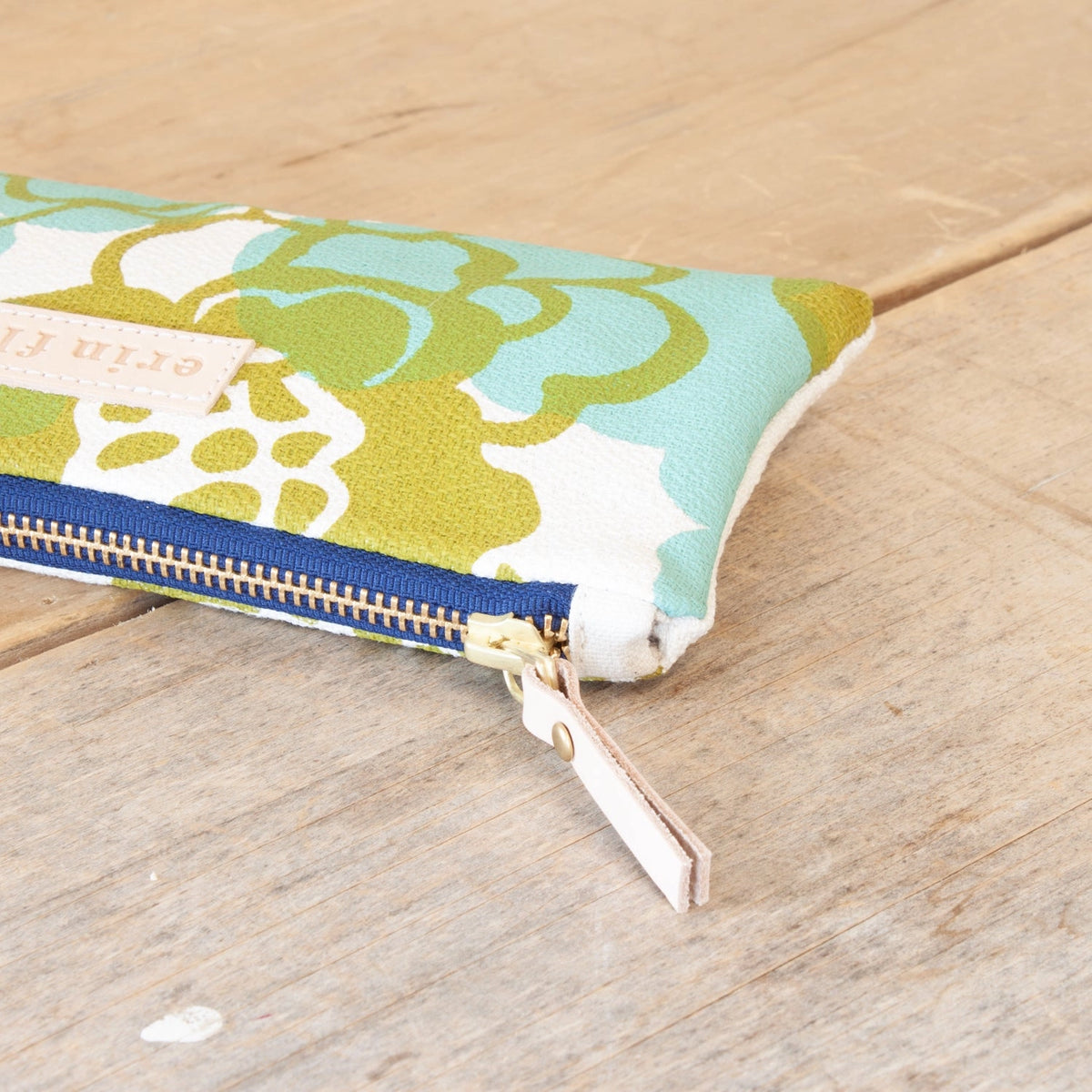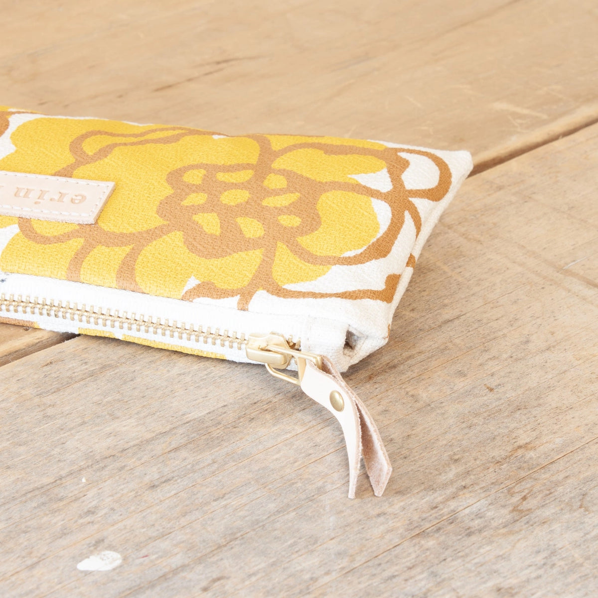 :: Material: Cotton Barkcloth, Cotton Canvas Lining, Leather Detail, Brass Zipper, Leather Pull