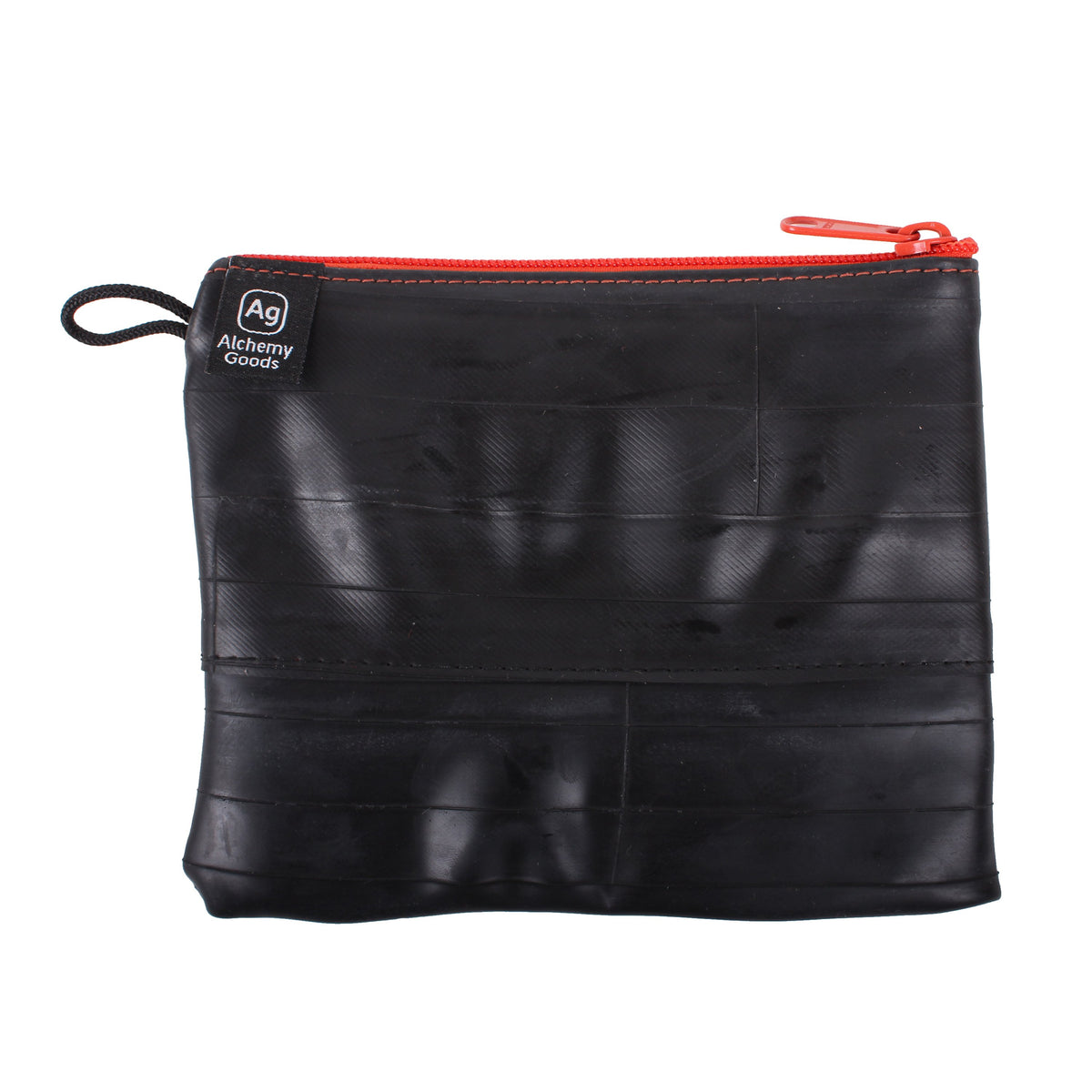 :: Made from upcycled bicycle inner tubes. Nylon colored interior liners. Nylon teeth with zinc zipper.