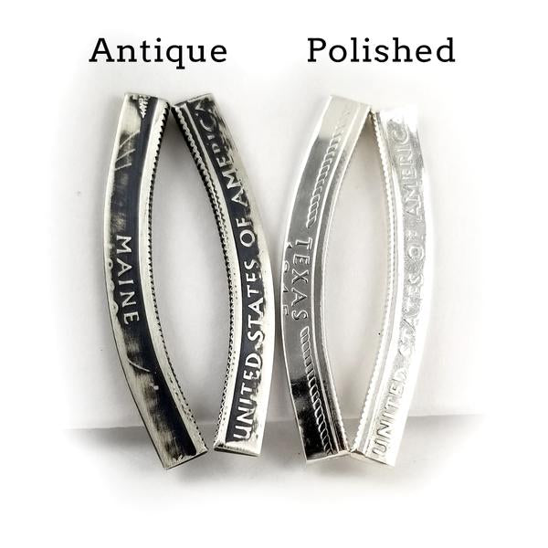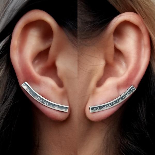 These earrings are handmade using actual United States 90% silver proof quarters.
