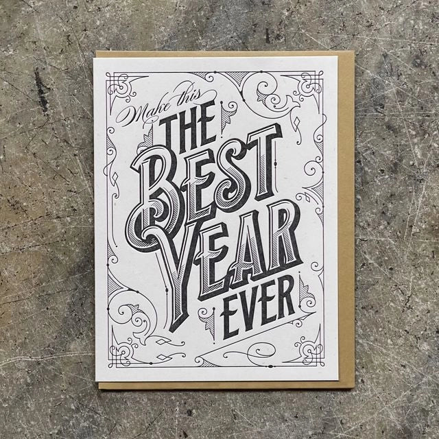 "Make this the best year ever." A sentiment so evergreen you might as well capture it in letterpress! Great for birthdays, New Year's, graduation, or turning a new leaf!