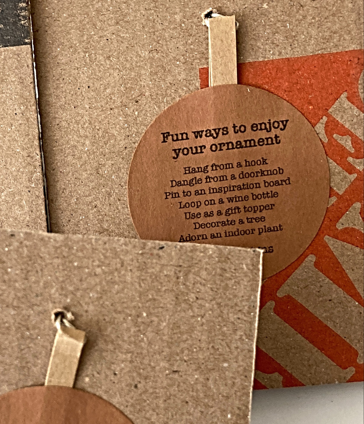 Enjoy at Christmas or year-round! Hang from a hook, dangle from a doorknob, pin to an inspiration board, loop on a wine bottle, use as a package topper... you get it. ;)