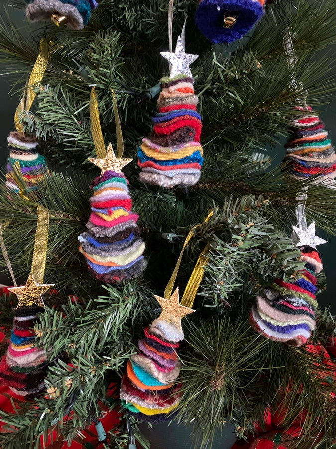p.s. - Each tree is unique! Because these trees are created using recycled wool, you will receive a carefully curated, but randomly colored tree. All trees are all in the same color scheme as the one pictured, but please know they will feature different scraps of felted wool.