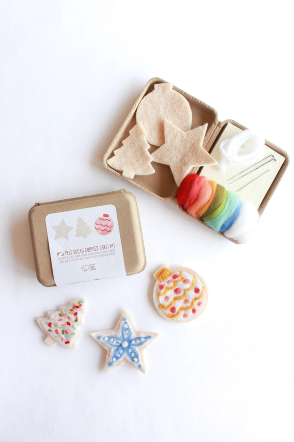 Craft up some holiday sweetness—no oven required. This beginner-friendly kit invites you to decorate three wool sugar cookies with frosting-inspired details. Quick to make, endlessly customizable, and perfect for gifting or holiday décor.