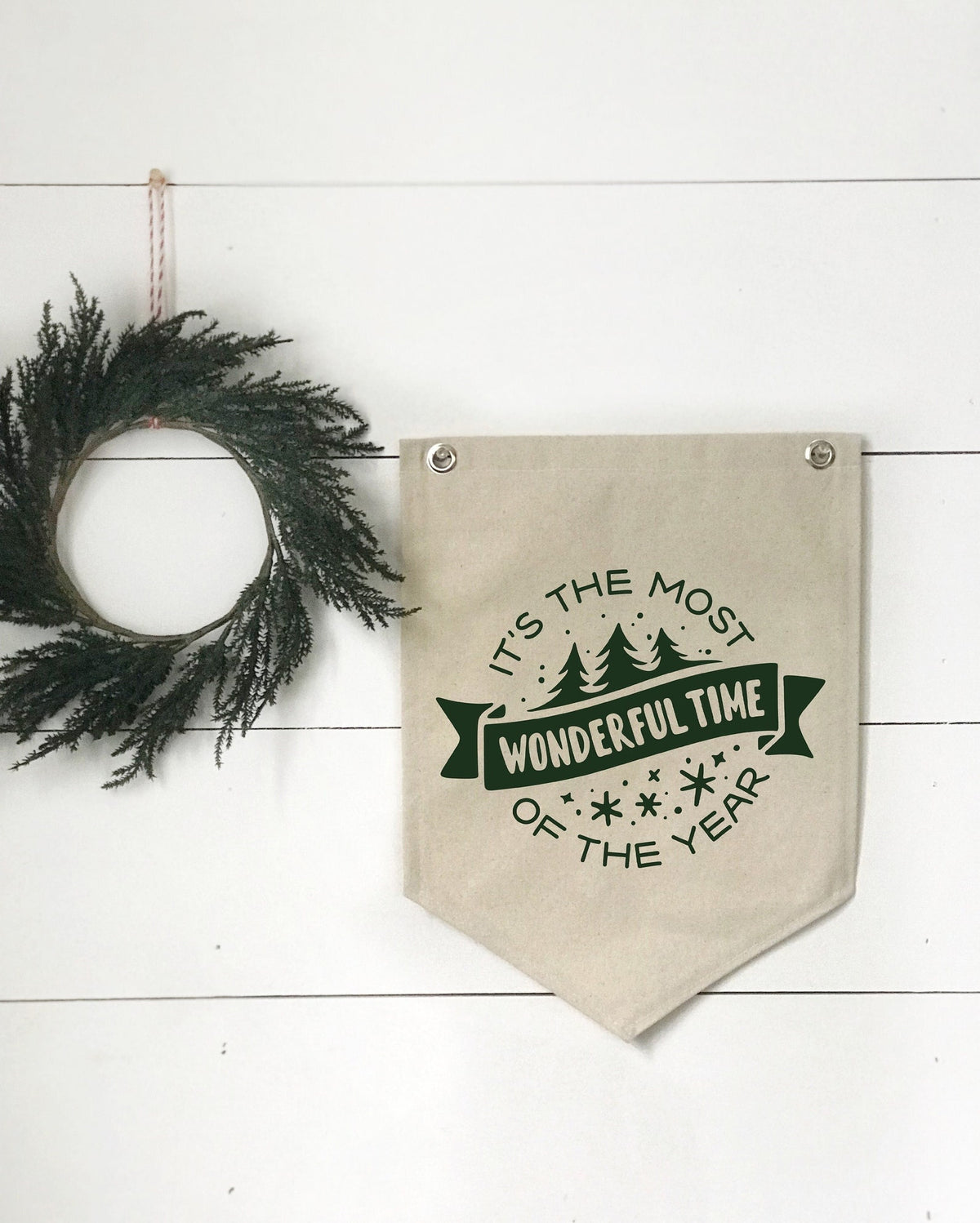 Most Wonderful Time of the Year Canvas Banner Christmas Pennant Flag