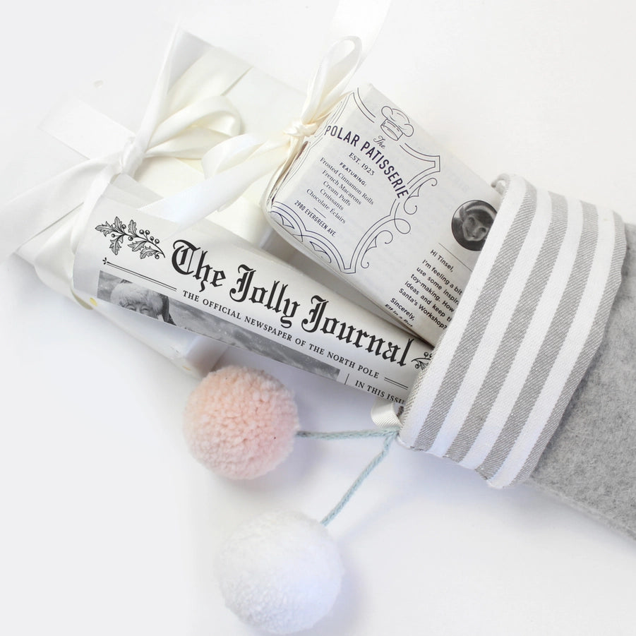 A playful twist on gift wrap—straight from the “North Pole newsroom.” The Jolly Journal looks and feels like a real newspaper, filled with charming fictional headlines, ads, and mini features that bring holiday magic to any package. Use it for wrapping gifts, tucking into stockings, crafting, Elf shenanigans, or as festive décor on the mantel. Lighthearted, nostalgic, and endlessly fun to explore.
