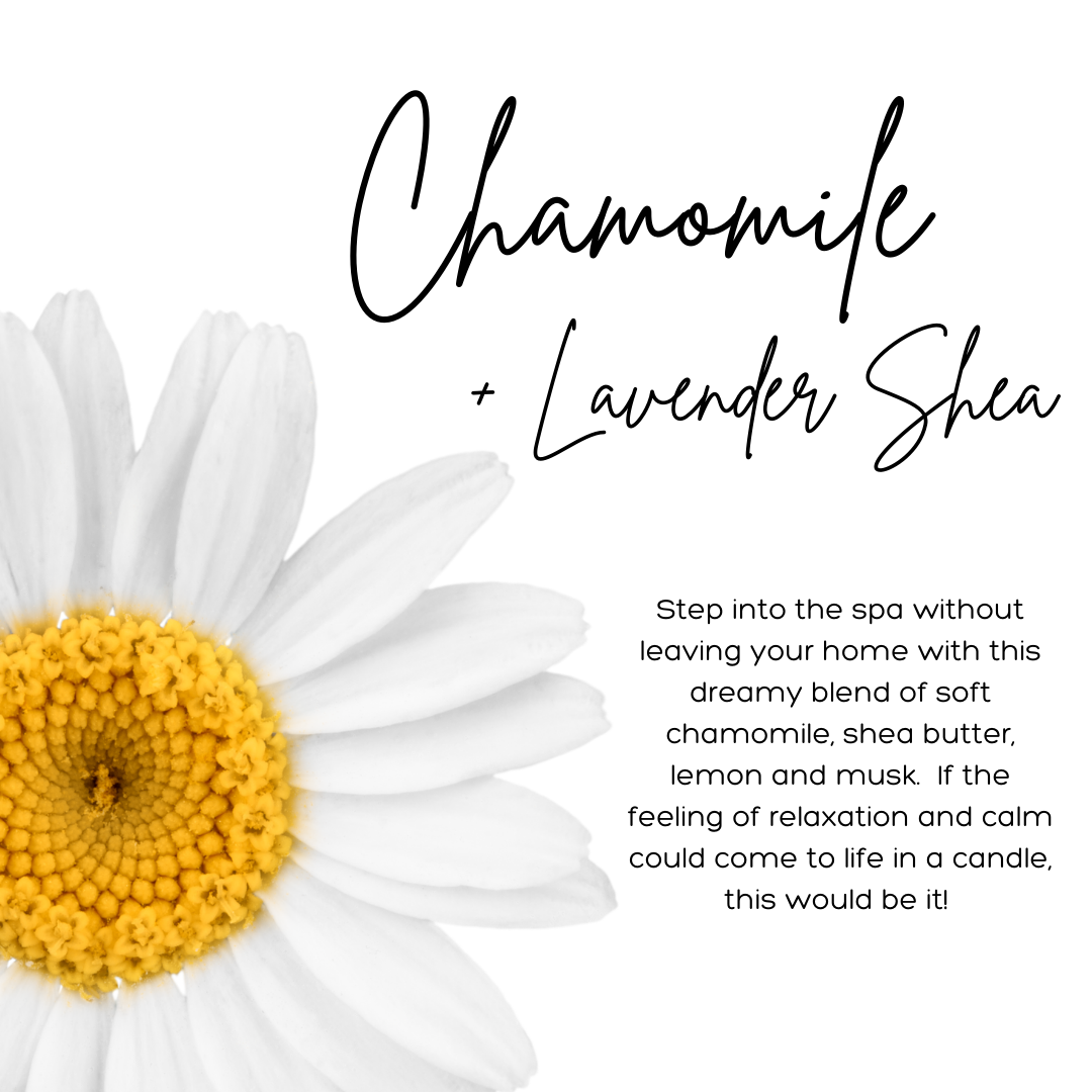 Step into the spa without leaving your home with this dreamy blend of soft chamomile, shea butter, lemon, and musk. If the feeling of relaxation and calm could come to life in a candle, this would be it!