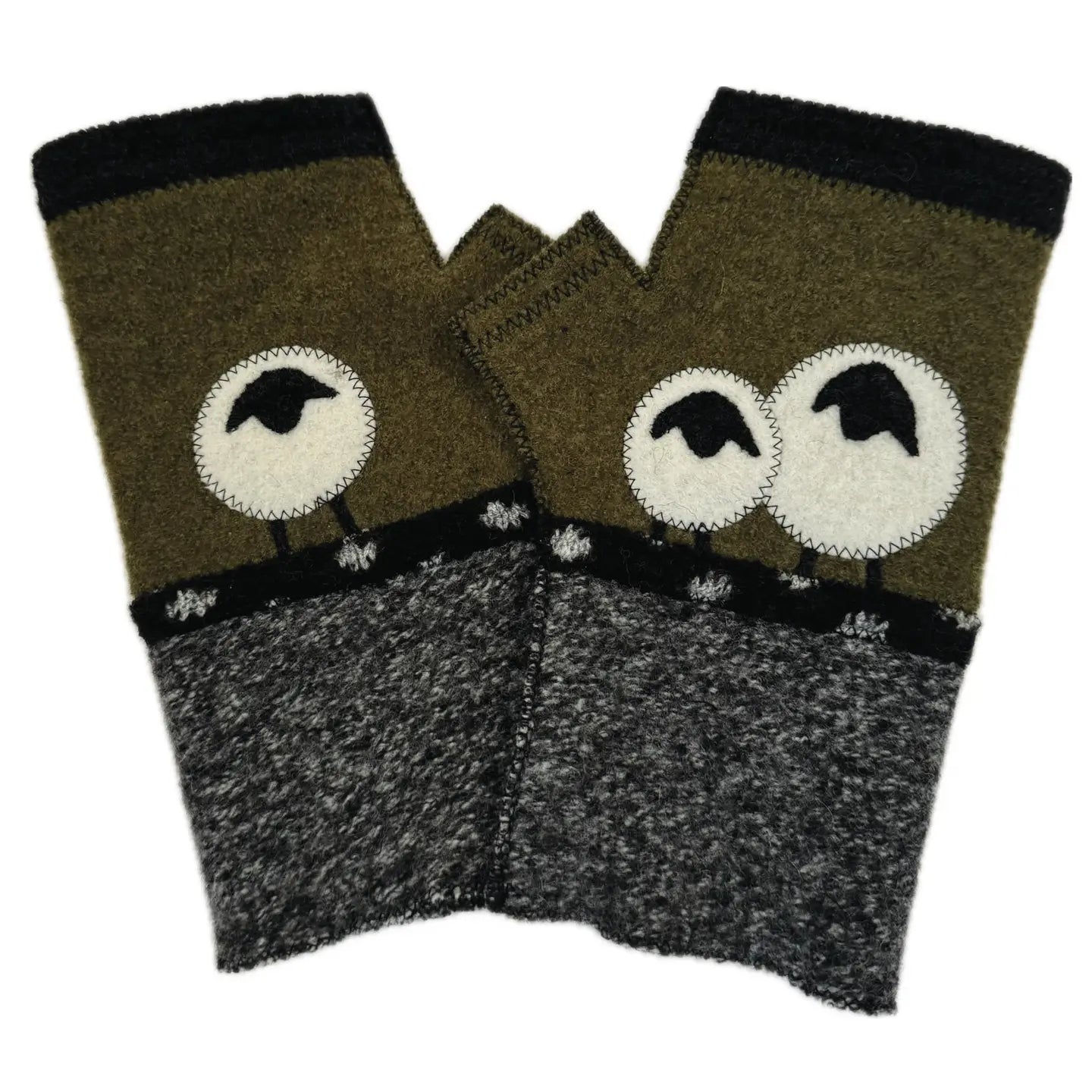 Green Sheep Fingerless Gloves