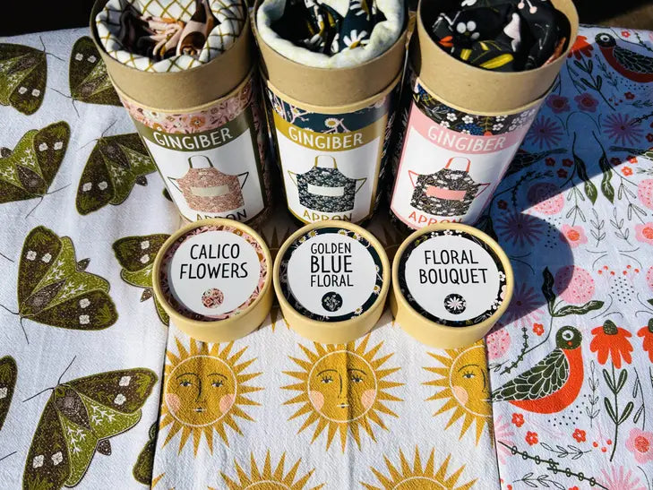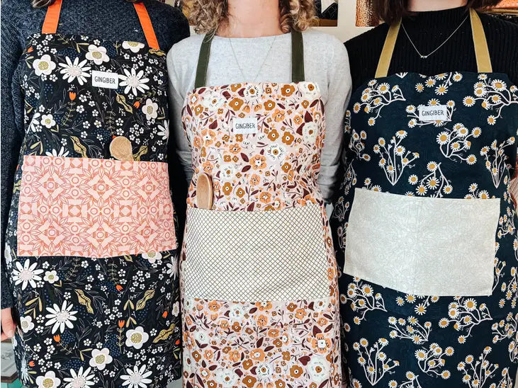 Baking tasty treats for your loved ones while wrapped in one of our new Gingiber aprons is the perfect way to spend the day! These cotton aprons include a large pocket with an adjustable waist tie back and feature the most popular Gingiber patterns.