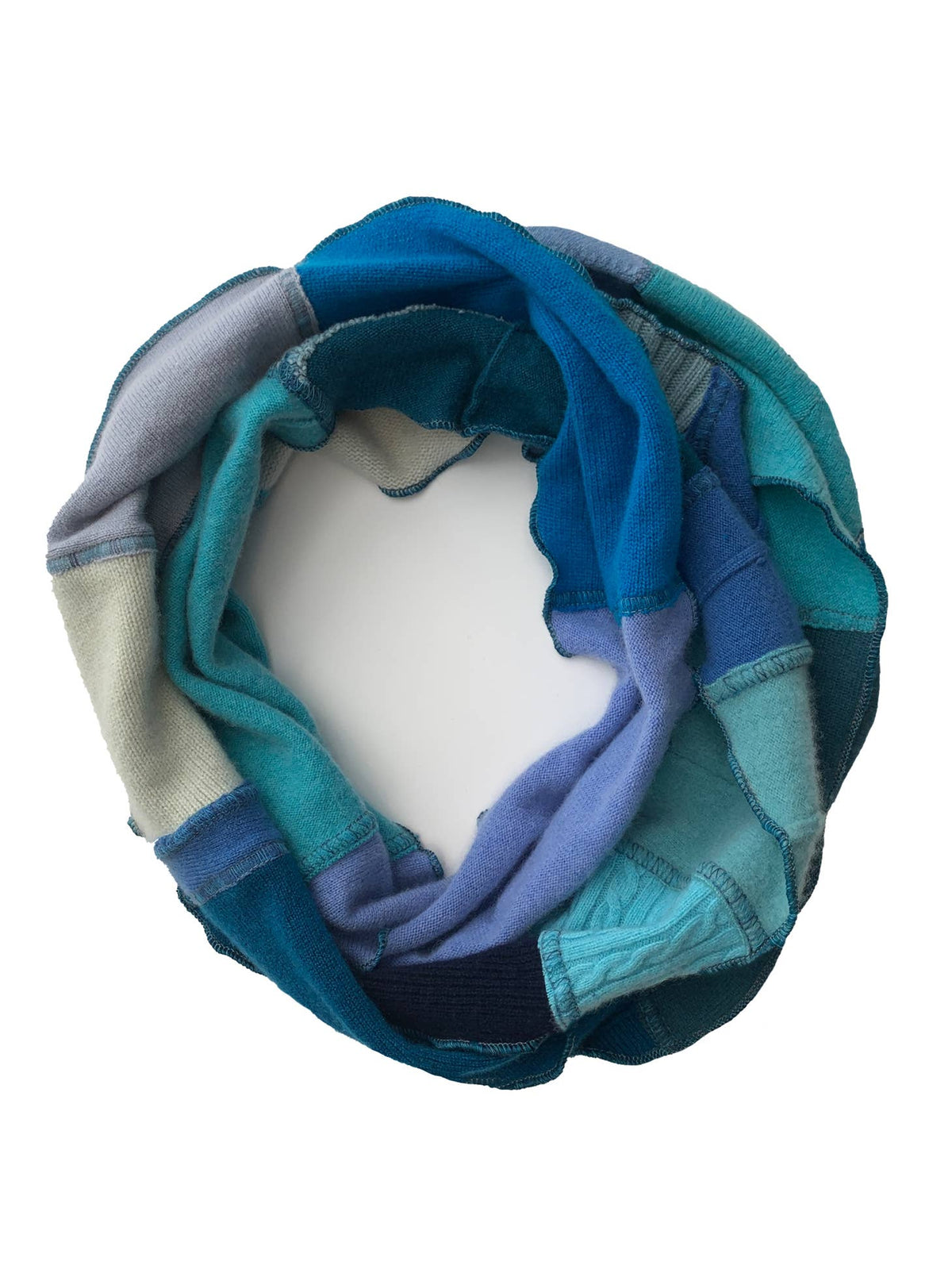 Sardine Clothing Co. Infinity Scarves are made from a patchwork of 100% recycled, slightly felted, cashmere. The roughly 96" inch circumference allows you to wear it in a loose traditional, double, or tighter triple loop. The lightweight and soft nature of cashmere makes the scarfs a fun and unique accessory nearly any time of year.