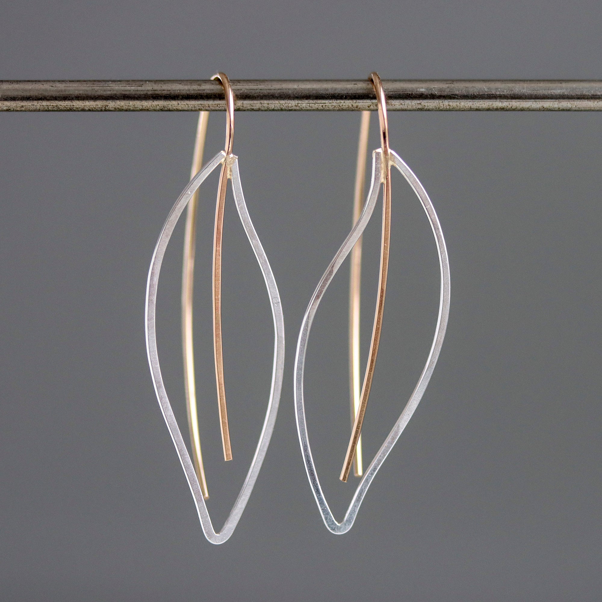 Light and airy, botanical-inspired earrings with sculptural, feminine curves. These modern, nature-inspired threader earrings fit right in with daily life, are great for work or play, and make a great gift for any gardener or nature lover. The central vein in the elm-inspired leaf shape curves through the ear and becomes a long, graceful threader back.