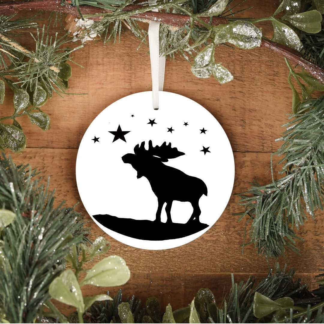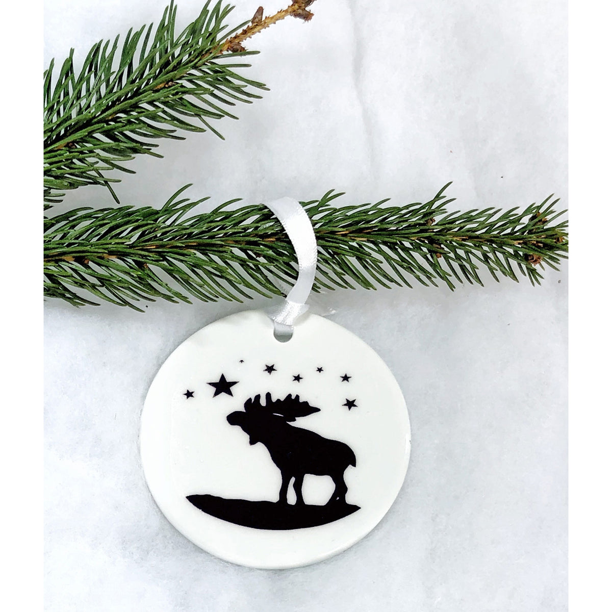 This Moose ambles gracefully under a cascade of stars. Add a little majesty to your tree!