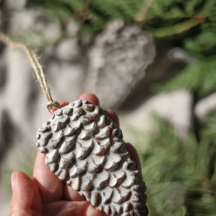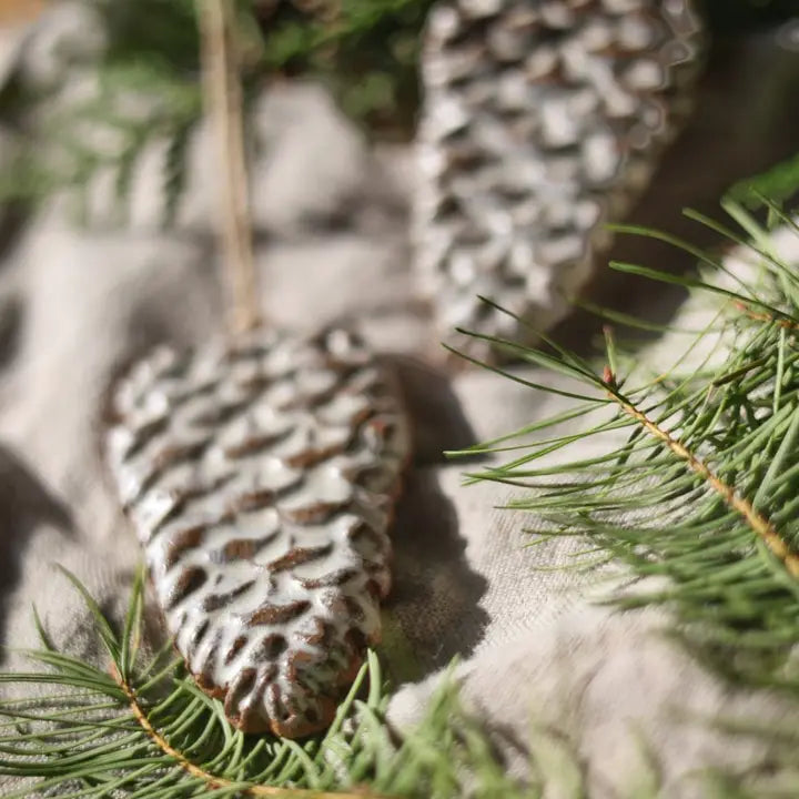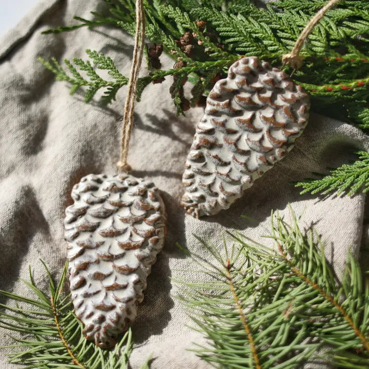 These handmade ceramic pinecone ornaments are both charming and useful. You may choose to simply hang it on your tree but you can also add a few drops of cedar essential oil (or whatever your favorite is) to the unglazed back and enjoy an all natural air freshener.
