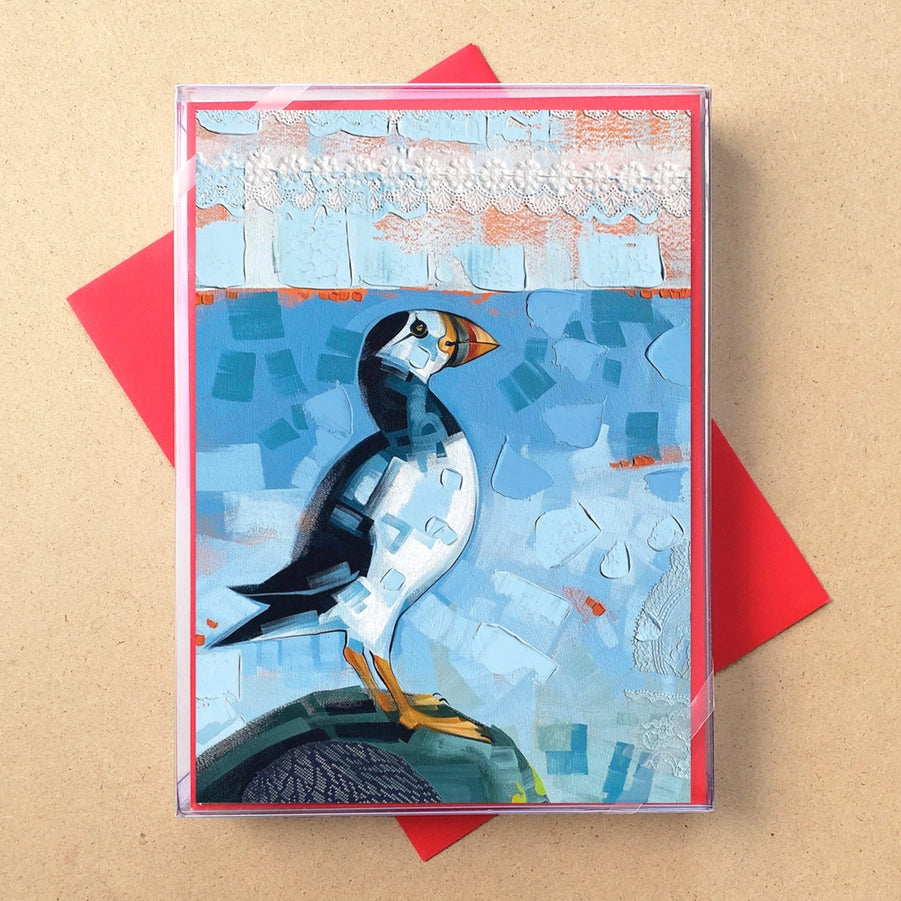 :: Box of 12 folded, matte finish greeting cards in a clear plastic box.