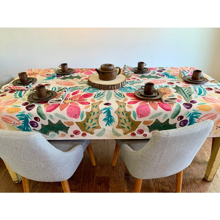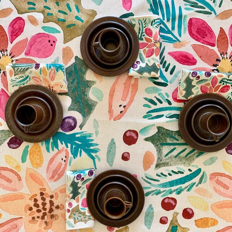 The winter rectangle tablecloth is one of several new creations in the new Flourish Collection! Fun and festive, this seasonal pattern will create the perfect start to your next holiday tablescape! A great choice for your next dinner party or casual brunch!